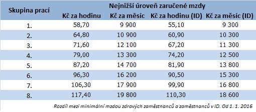 Vláda na svém jednání v květnu loňského roku schválila Národní plán podpory rovných příležitostí pro osoby se zdravotním postižením na období 2015 až 2020. V tom mimo jiné počítá i s odstraněním nerovnoprávného odměňování zdravotně postižených minimální mzdou. K tomu by podle Ministerstva práce a sociálních věcí mělo dojít hned na začátku roku 2017, kdy už by měla být uplatňována pouze jedna sazba minimální mzdy pro všechny zaměstnance.