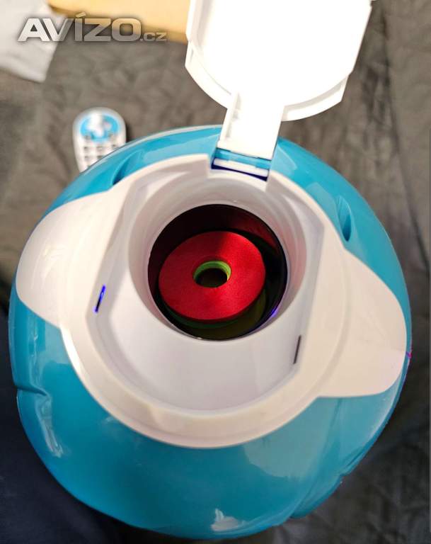 A jako zábavný bonus střílí barevné pěnové disky.