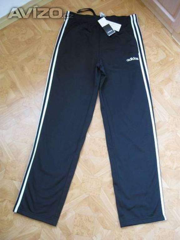 Kalhoty či tepláky mají temně černou barvu a boční lampasy, stejně jako logo Adidas na levé nohavici jsou v bílé barvě. Střihem jsou klasickým pohodlným volnočasovým modelem. V pase do širší manžety s pružnou všitou gumou a vnitřně protaženou černou stužkou. Dvě boční všité kapsy.