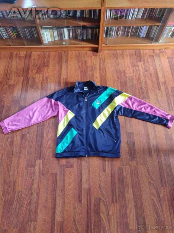 Prodám originální vintage mikinu značky Puma s barevným designem. Mikina kombinuje fialovou, zelenou a žlutou barvu, což jí……