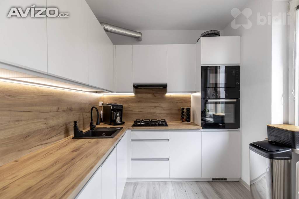 Hlavní přednosti bytu: dispozice 3+1 s balkónem, moderní kuchyně s dostatkem úložného prostoru a vestavěnými spotřebiči, koupelna s prostorným sprchovým koutem.