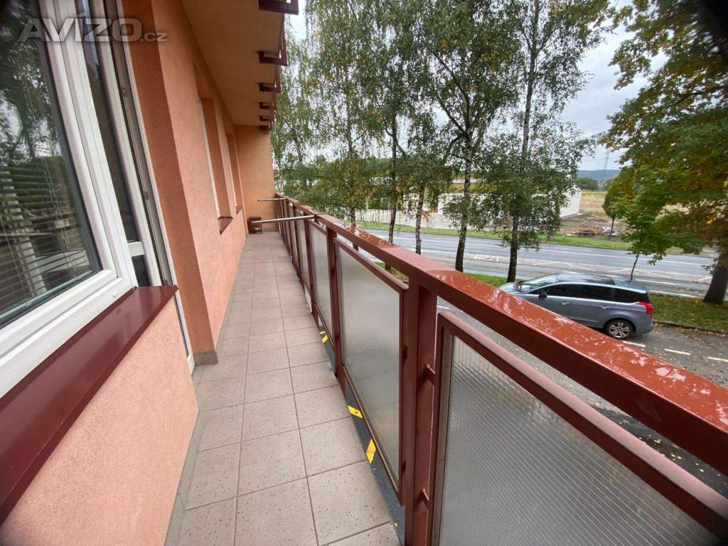 Byt disponuje velkým balkonem přes všechny tři pokoje.