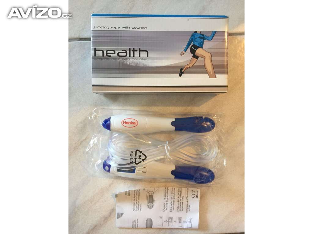 Prodám švihadlo s displejem se 4 režimy zobrazení - počet skoků, spotřeba kalorií (cal), vzdálenost v kilometrech (km) a……