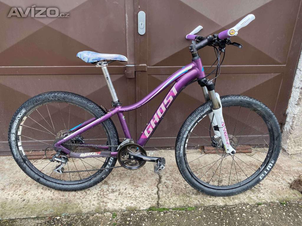Hliníkový rám velikosti XS (14/15“) na postavu 140cm až 160cm, velikost kol 27,5“, řazení Shimano Acera, hydraulické kotoučové brzdy Tektro, odpružená vidlice „Ghost“ uzamykací z řidítek (loock out), stav: prasklá objímka loockoutu na řídítcích (možnost vyměnit), zničené krycí sklíčko ukazatele řazení předního přesmykovače, nemající vliv na funkčnost a rozpoznání 3 předních rychlostí, opotřebení s odřeniny běžného provozu a stavu po 2 dětech nemající vliv na funkčnost kola, od novoty s fakturou a záručním listem, již po záruce. Kolo plně funkční, vhodné odzkoušet na místě při prodeji. Cena 8000,- Kč, Ostrava město. Preferuji osobní odběr s platbou v hotovosti pro obhlídku a odzkoušení kola bez poštovného a balného, není v ceně. Předejdeme tak nesrovnalostem, že se pak něco nelíbí.