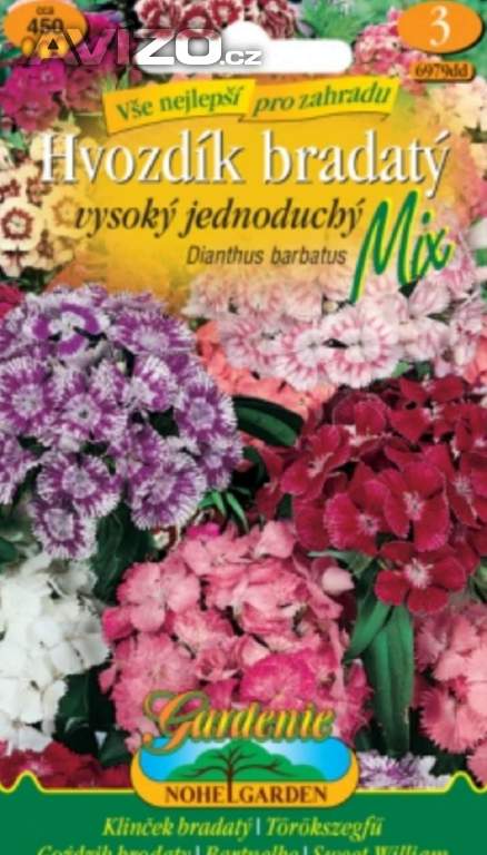 Hvozdík bradatý vysoký jednoduchý, směs - 450ks semen za 23kč. Oblíbená vonící dvouletka používaná pro výsadbu na záhony i k řezu. Osivo Hvozdíku vyséváme řídce, substrát udržujeme stejnoměrně vlhký a až do vzejití zastíněný. Rostlinám se daří v půdě dobře zásobené živinami na slunném stanovišti. Hnojení čerstvou chlévskou mrvou nesnáší. Před holomrazy rostliny Hvozdíku chráníme chvojím. Zasílám poštou nebo do zásilkovny. Více na: www.levna-semena.cz
